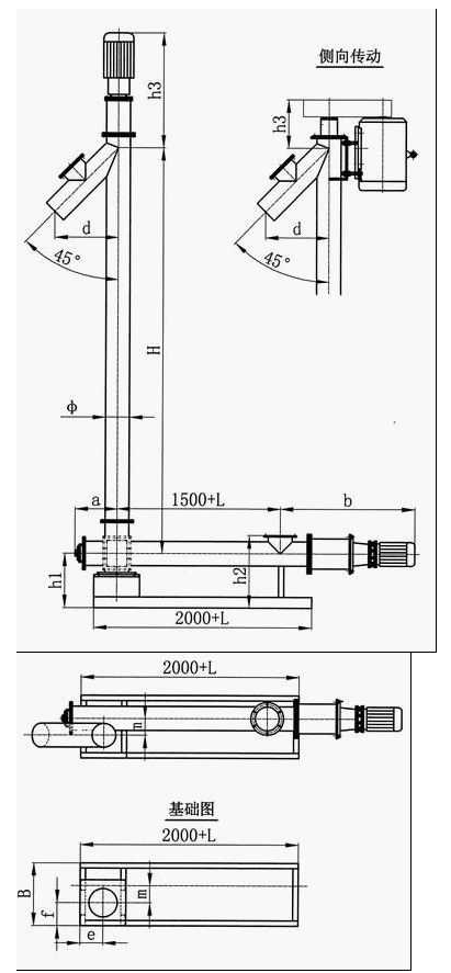 2、螺旋輸送機分水平槽機體(即喂料螺旋槽機體)和垂直機體兩部分。垂直機體分頭節、中間節、尾節三部分,每一部分又有集中不同規格的長度依機高選擇,可組成3~15m不同高度的整機,螺旋機每增加0.5m為一高度規格,供用戶選擇。