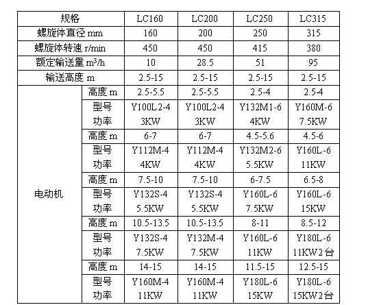 六、LC型垂直螺旋輸送機規格及技術參數: